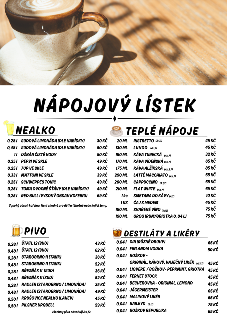 JÍDELNÍ A NÁPOJOVÝ LÍSTEK